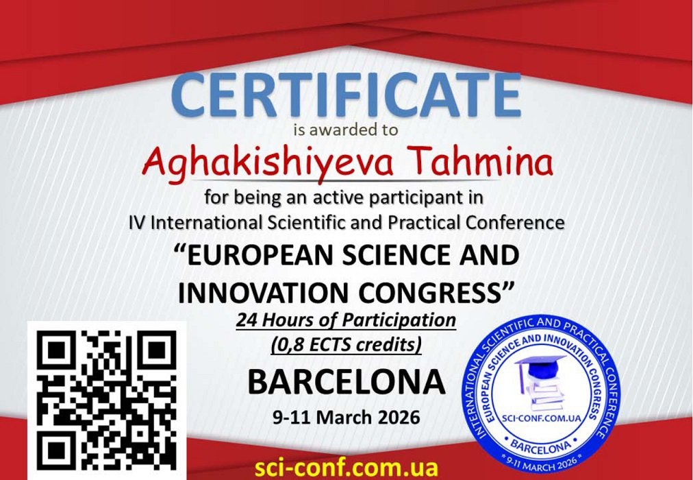 Təhminə Ağakişiyevanın məqaləsi «AVROPA ELMİ VƏ İNNOVASİYA KONQRESİ» jurnalında nəşr olunub